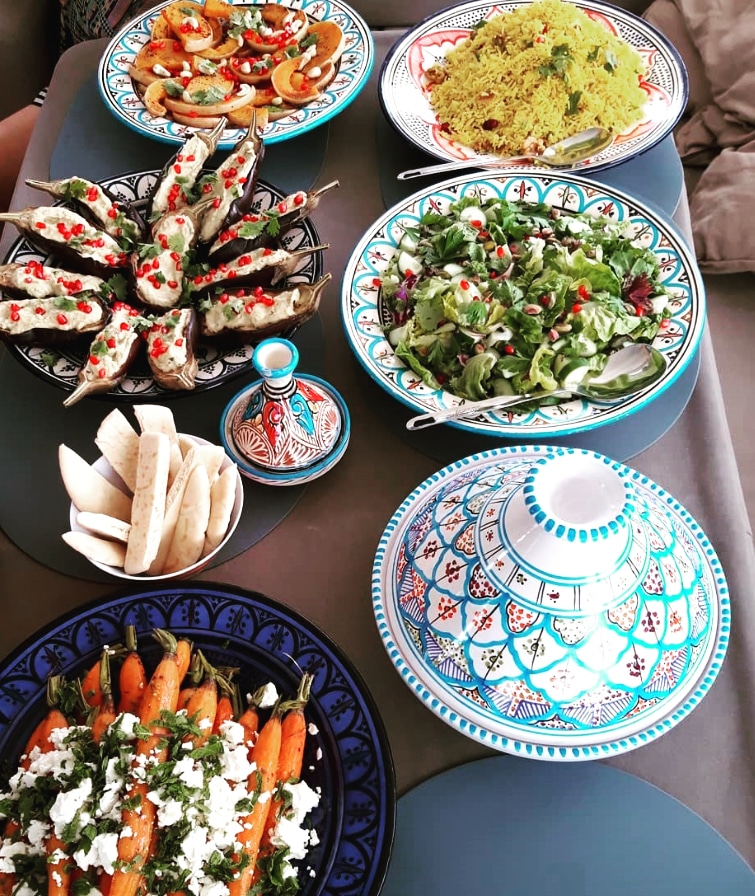 We also make some of our ingredients like cheese, yoghurts, breads, focaccia, naan breads and chapatis. Our portable kitchen is equipped with pots & pans, cutlery, crockery, and barbecue.